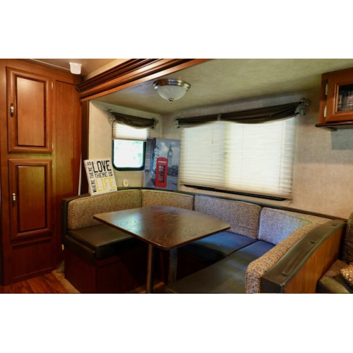 This trailer will easily accommodate the family as well as extra guests. The master bedroom has a queen size bed. A separate bunk room sleeps at least 4 possibly more, plus there living room will accommodate at least 2 more guests.